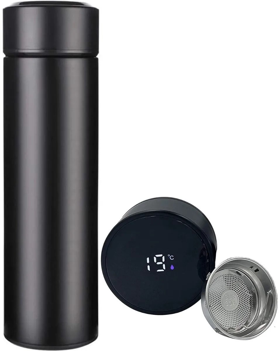 botella de agua con medidor de temperatu